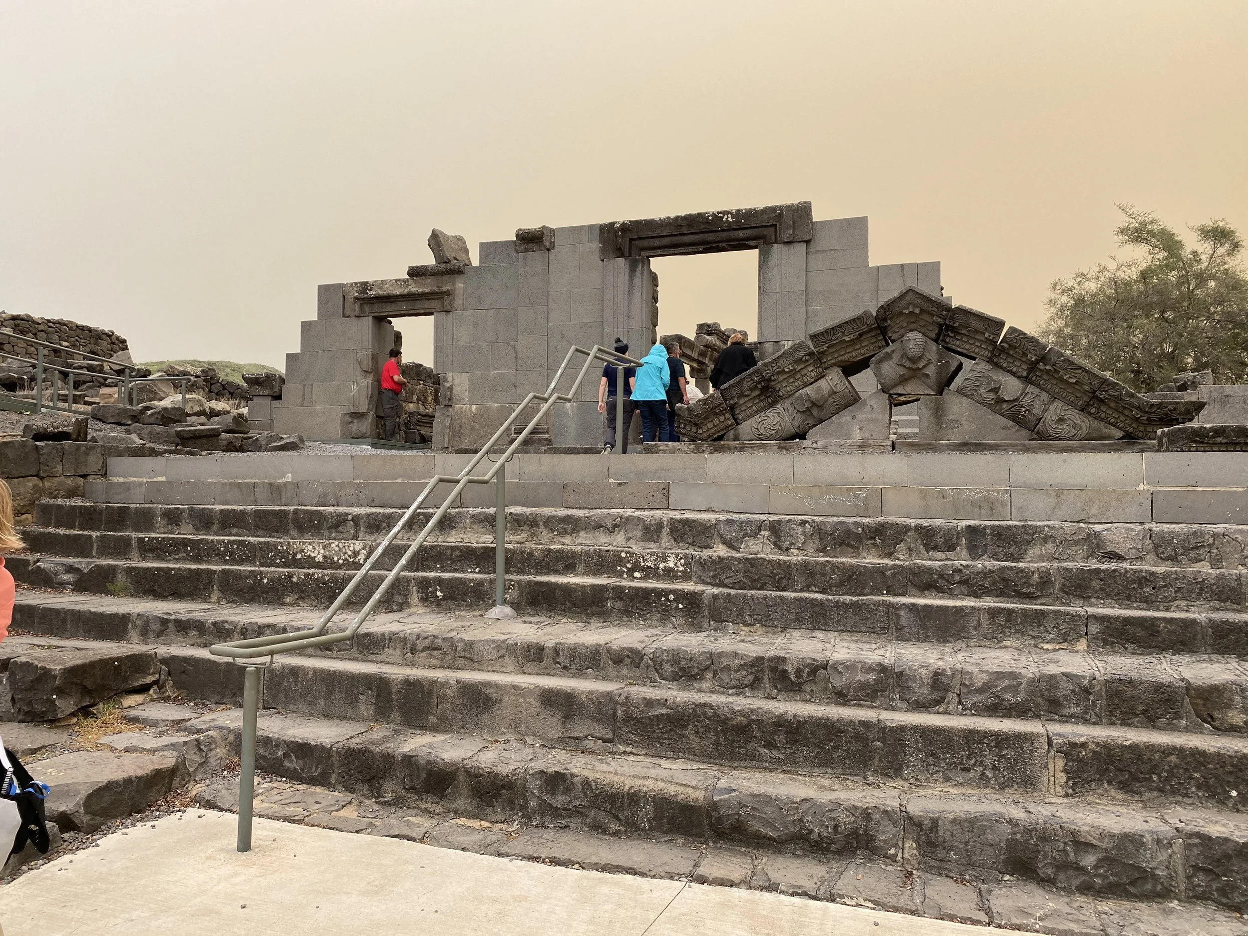 Other structures at the site include a mikvah, olive presses, homes and cisterns. We were there on a cloudy day and the building material here is also dark - basalt stone that is native to the area. It is a quiet and peaceful place and easy to image a relatively small, likely agricultural, community living here at the time of Jesus earthly ministry.