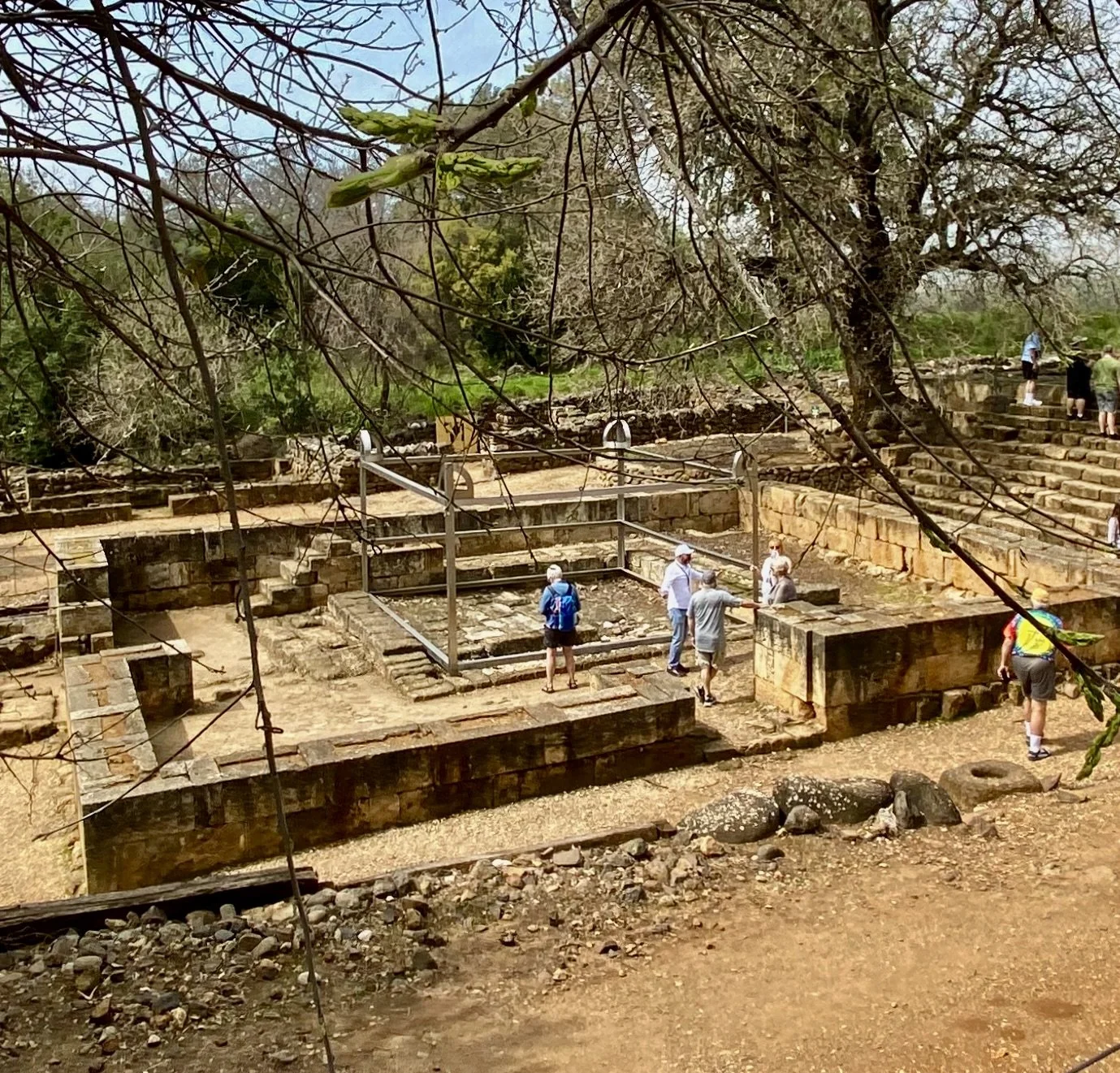 Tel Dan Israel. Iron Age city where the 9th century King Jeroboam of the northern kingdom of divided Israel corrupted worship of Yahweh with installation of a golden calf. Archeologists have found remains of a huge four horned altar including a piece with one of the horns. The metal frame illustrates the massive size of the altar.