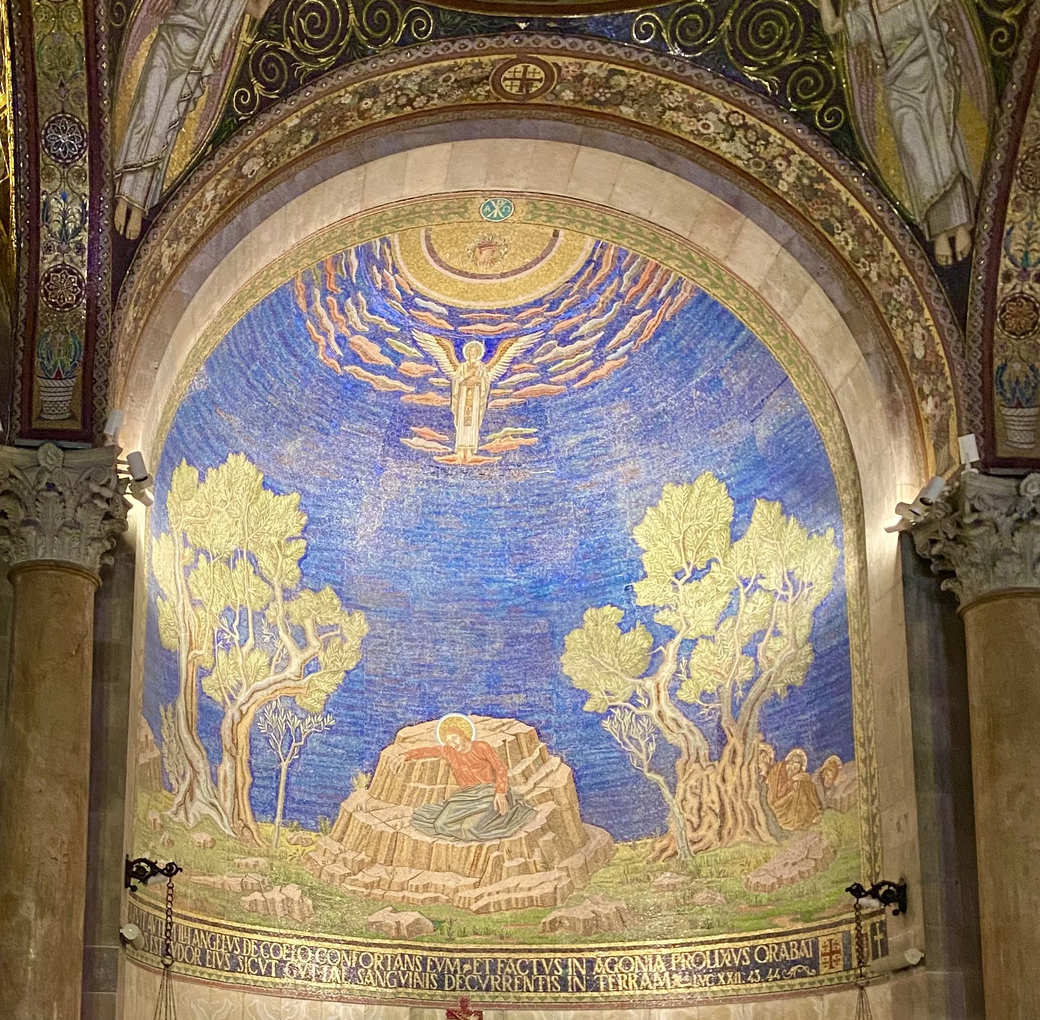 Today the church on this site is the Church of All Nations - also known as the Basilica of the Agony and the Church of Gethsemane - built in 1924. While excavating the original byzantine era church, mosaics were found and placed under glass. More recently the remains of a second temple era mikveh have been found. Greek inscriptions were found from the Byzantine church. The 2020 finding of the mikveh is particularly exciting because it is the earliest archeological evidence of some importance to this site. We last visited in March 2020, prior to this discovery.