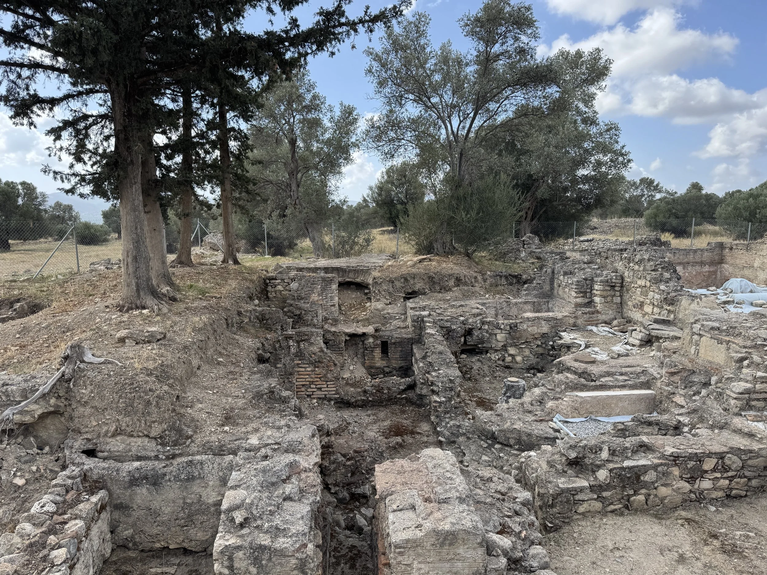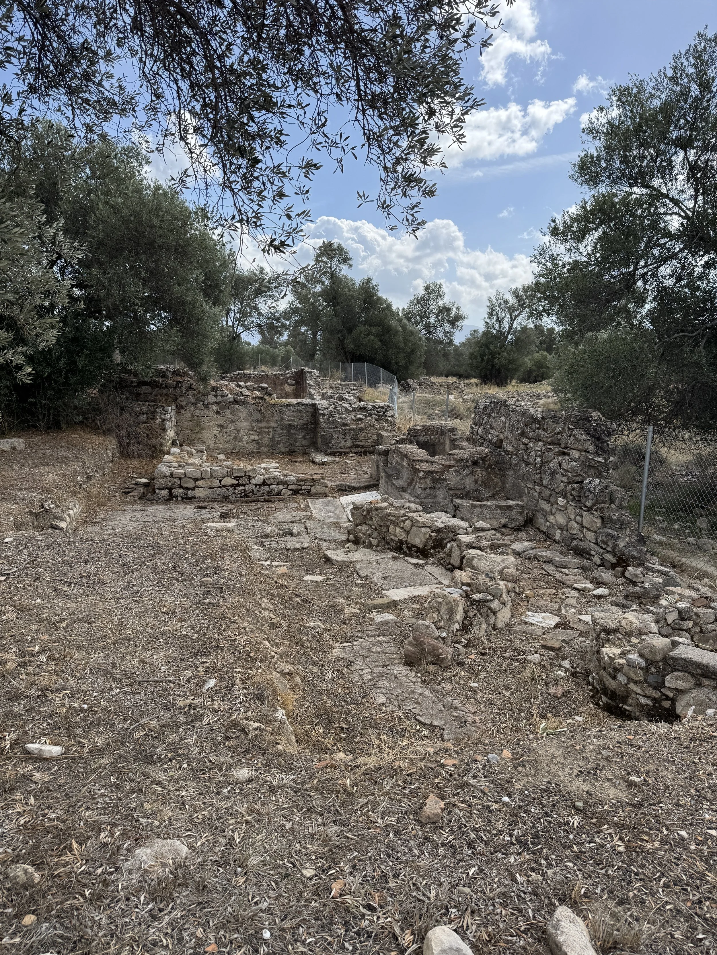 There is a rough path around the area and it’s well worth a little more difficult walk to see the site. There is no signage to explain what you are seeing unfortunately. The temple of Apollo of Pythios has been most extensively excavated. In the 1880’s numerous inscriptions were found here. The temple dates from the 800 - 600 BC archaic era, with layers of renovation and construction thru the Roman era, and evidence of being used as a Byzantine church finally. Nearby is an Odeion. Not the restored Odeion across the road with the Gortyn law code (we’ll do pictures of that next week and talk about the TItus connection) but an older Odeion. Also a bath complex, a nymphaeum, the Roman Praetorium, a temple to Egyptian gods and funerary remains.