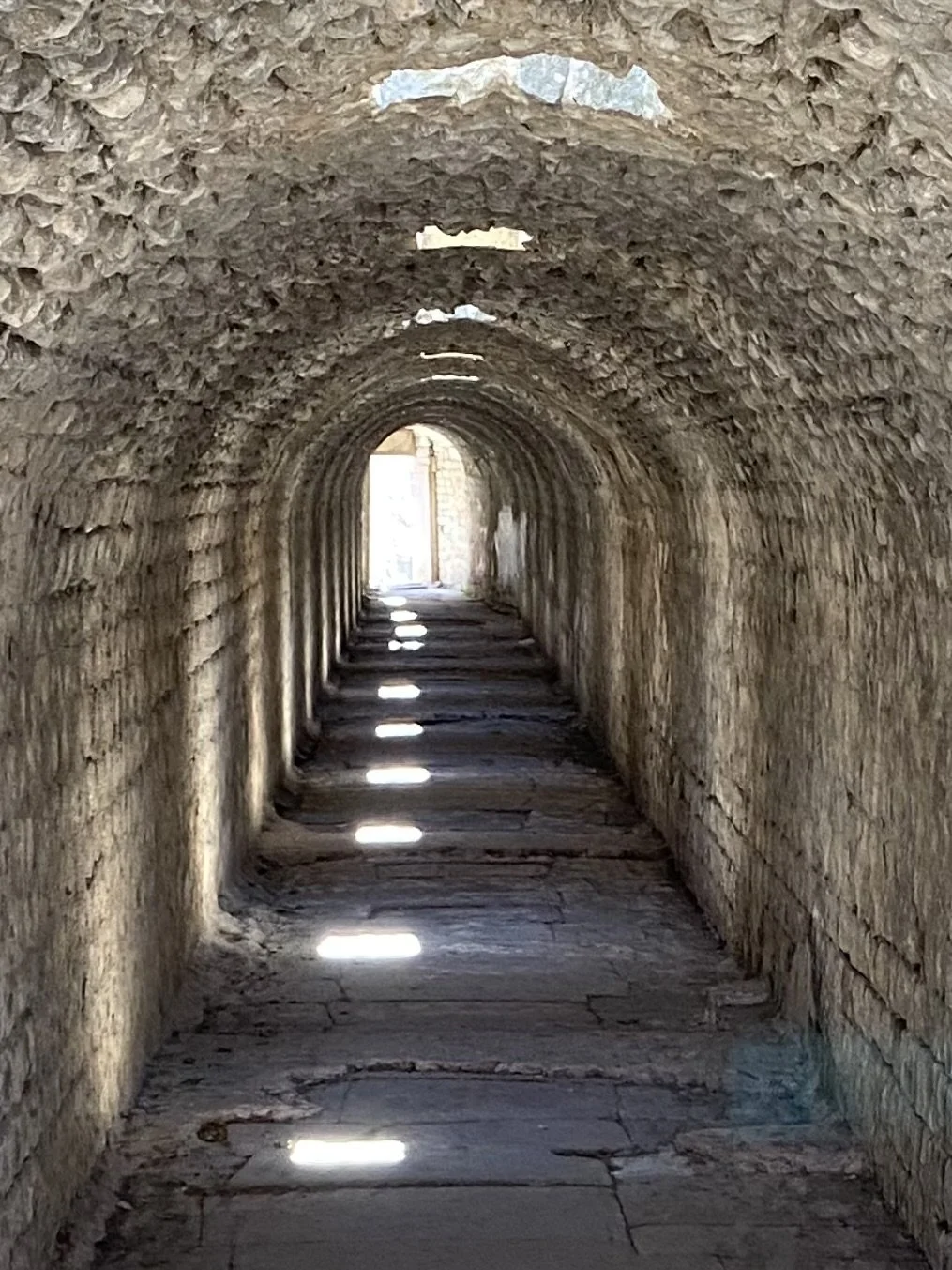 Pergamon Turkiye. Pergamon asclepion healing center. The cryptoporticus (underground walkway) between the sacred springs and the sleeping area. Light and curves used to create a soothing atmosphere.