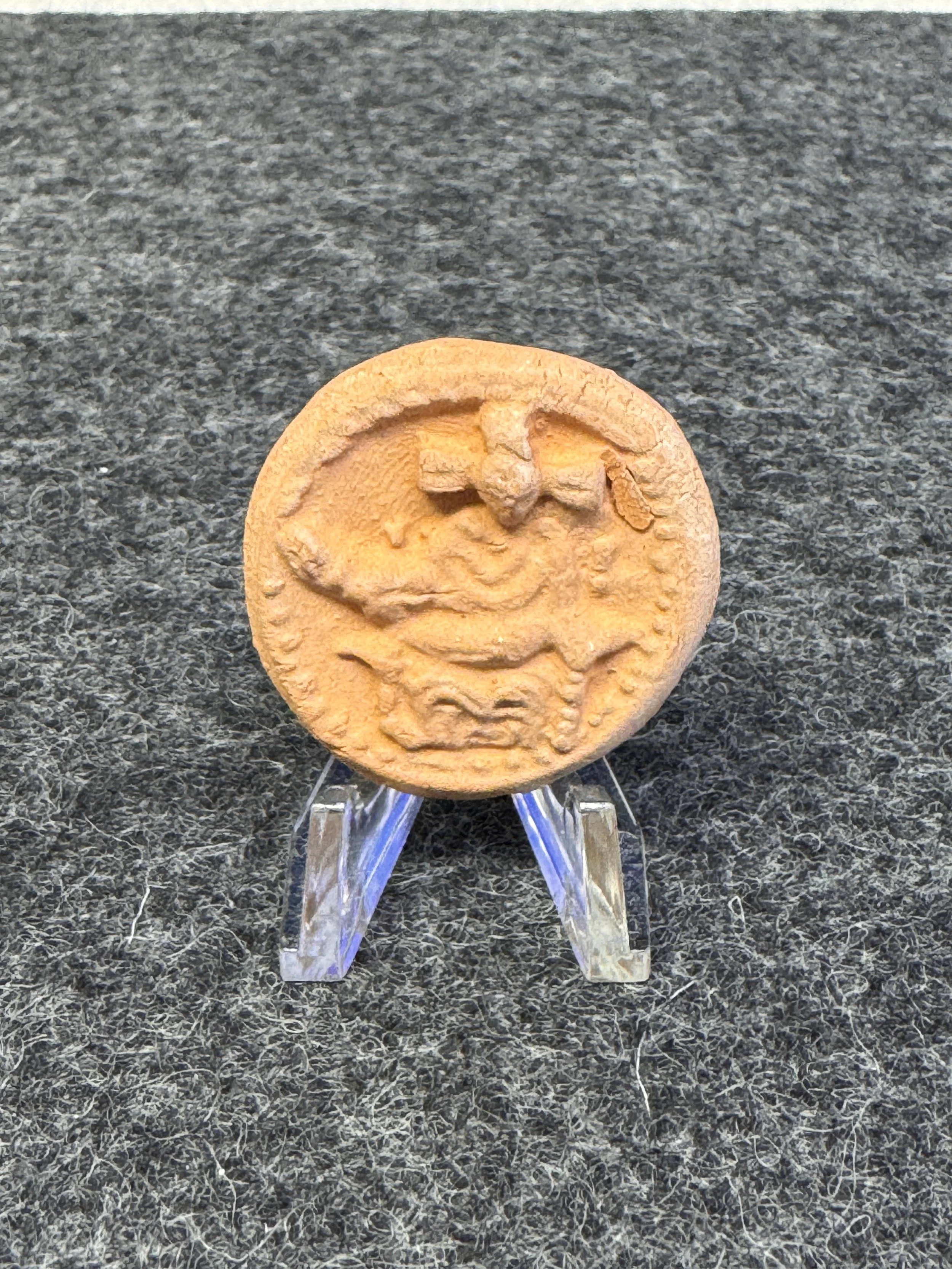 I started making calls and after some persistence finally stumbled upon a local potter who with the help of a family friend 3D printed the token from the pictures we sent. She then created a plaster mold from the 3D token to press or make individual terracotta tokens. Finally, she fired them in her kiln. She graciously made me 25 tokens!