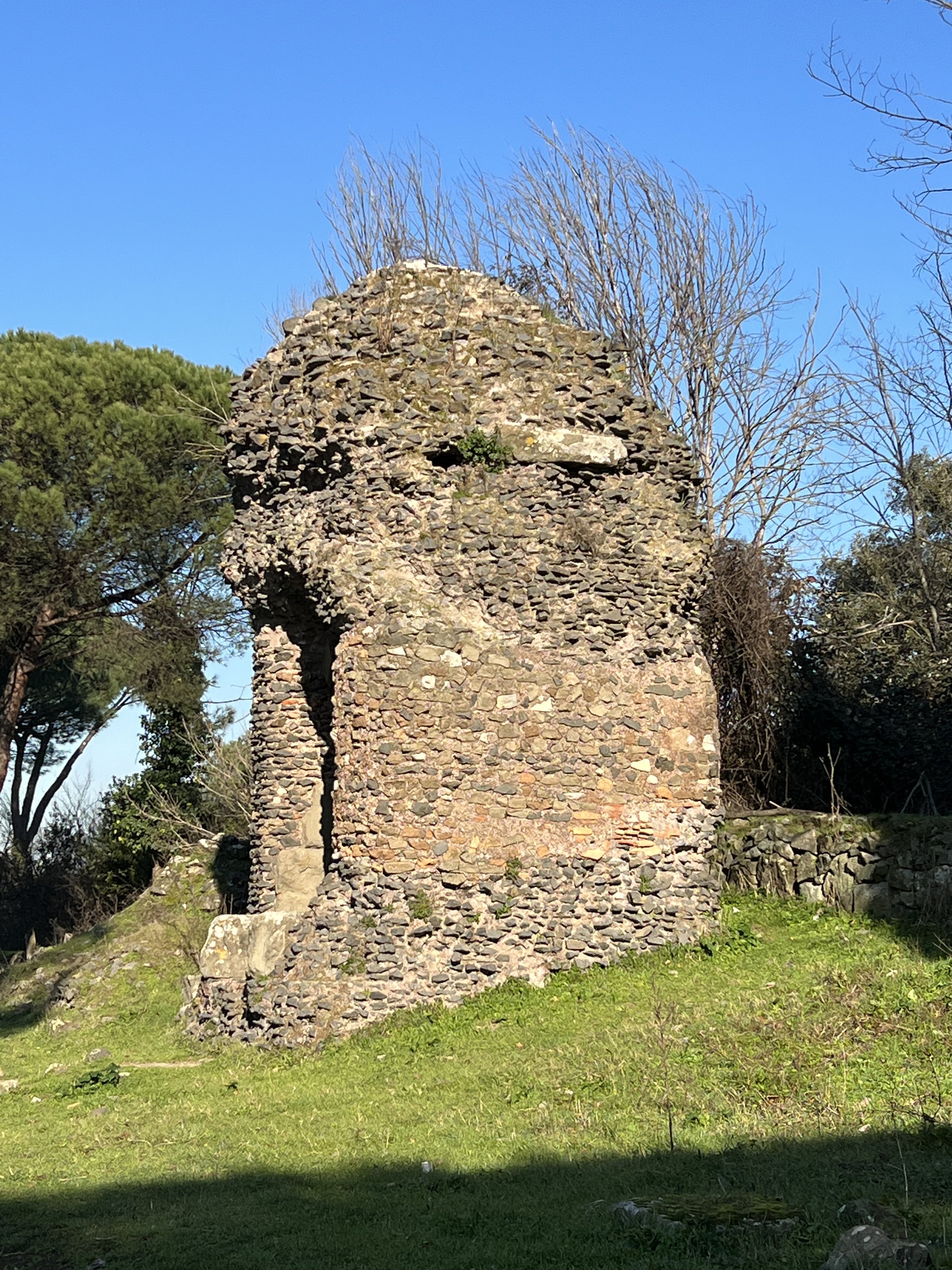 > Opus Incertum (2nd - 1st c BC): small irregular stones set into a concrete core. Examples are from a monument on the Via Appia in Rome and a wall in the Forum of Caesar