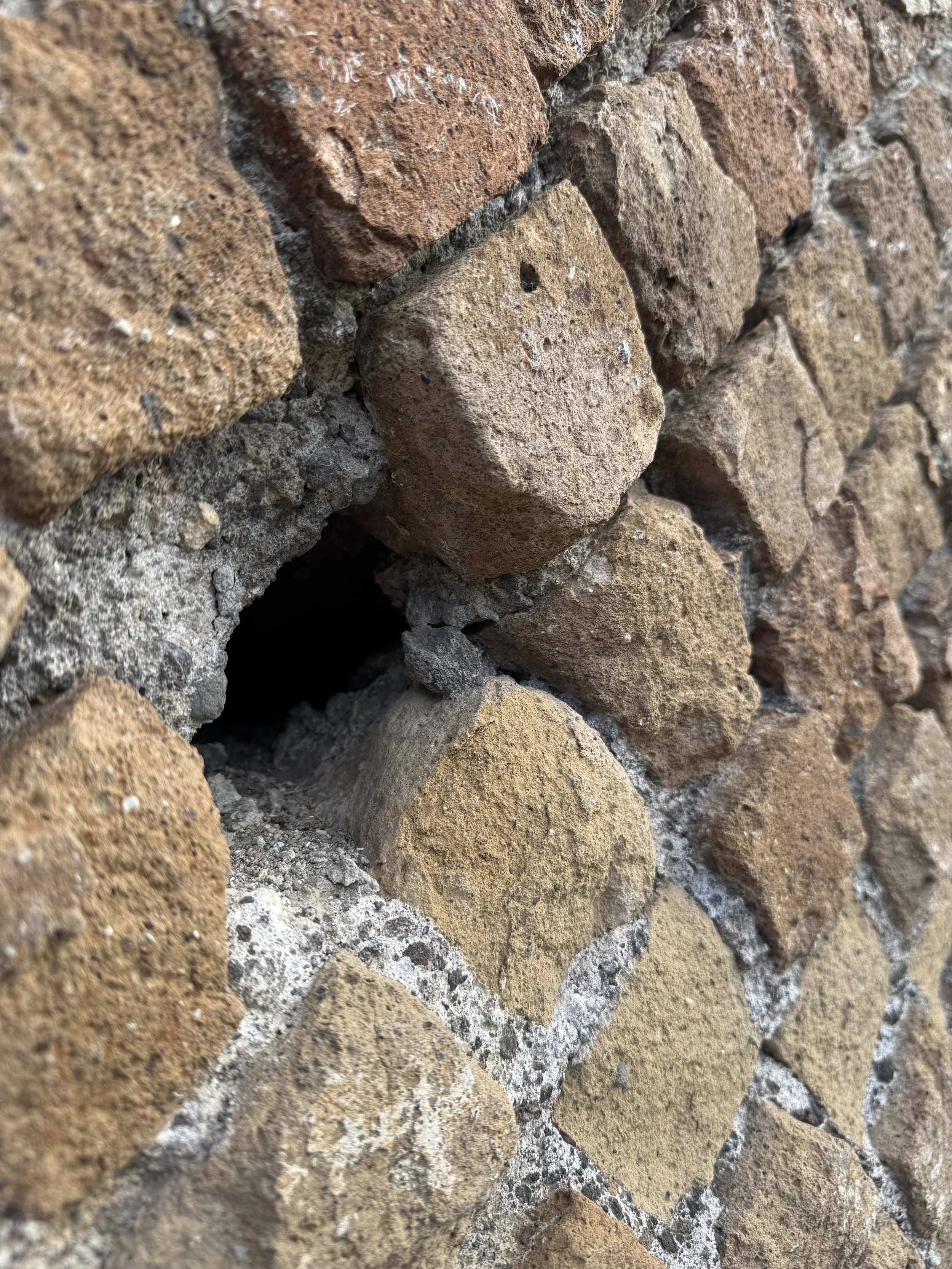 > Opus Reticulatum (1st c BC - 2nd C AD): diamond shaped volcanic tufa blocks set into concrete. Examples from Minturnae on the Via Appia, from a roman catacomb and from the walls of a latrine.