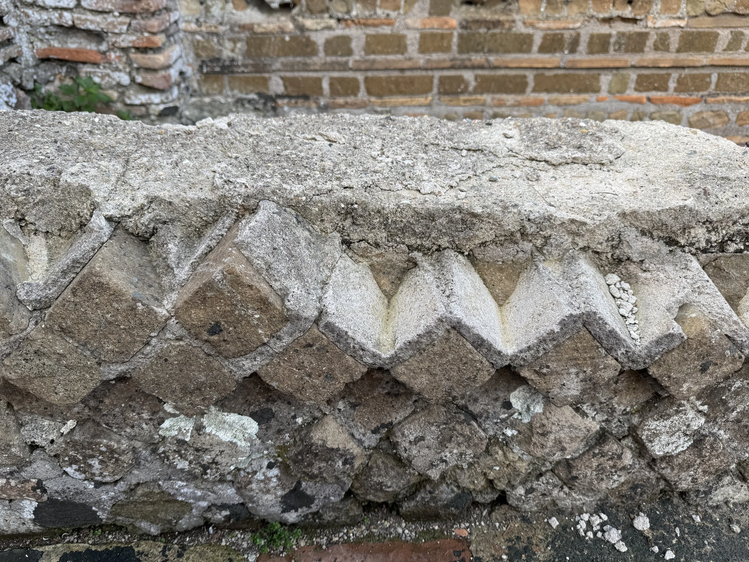 > Opus Mixum ( 1st - 4th century AD) combination of brick and reticulatum set into a concrete core. Examples from