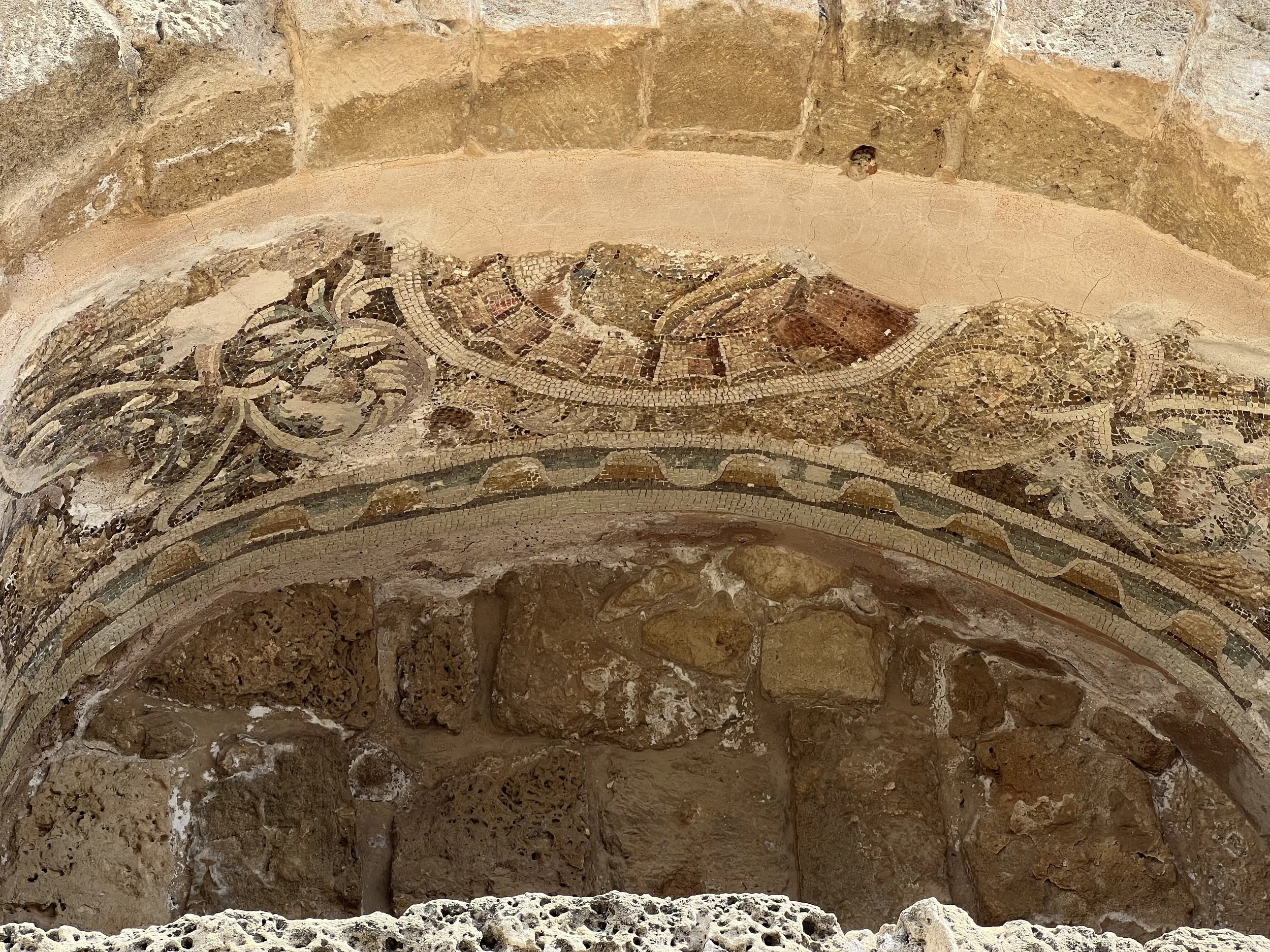 We were able to see remains of the breakwaters at the ancient port and most of the features of the northern section. You will see in the pictures Hellenistic remains of a pool surrounded by statuary ( now headless) and a colonnaded walkway and colonnaded palestra near the gymnasium. Also a large bath complex with mosaic features still visible. There are still mosaic floors and some later inscriptions in the floors with Christian symbols.