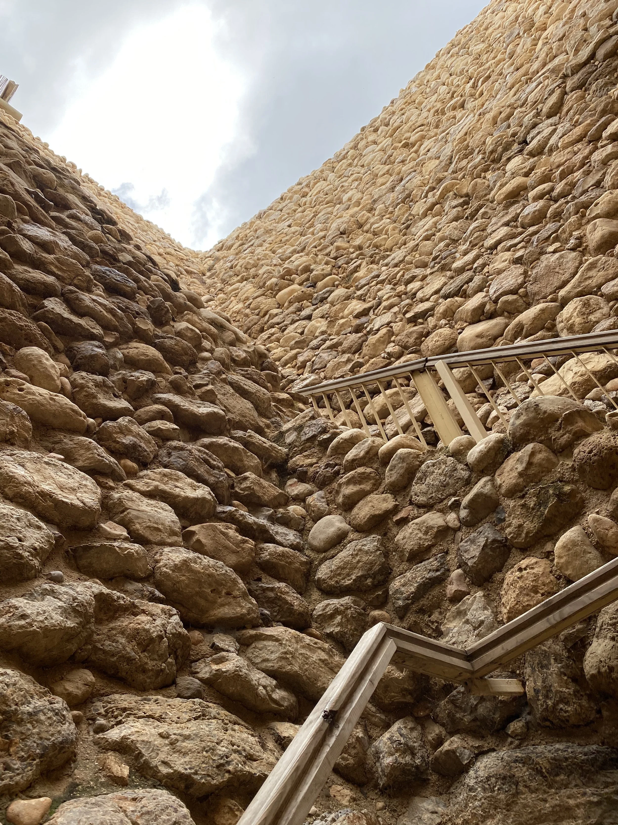 The well of the city is outside of the main gate structure and is one of the deepest wells in Israel. The city gate is 4 rooms with benches. Near the gate are long buildings in which many storage vessels were found and may have been for trade or a type of market place. There are examples of traditional 4 room houses. Most impressive is surely the water system. It was built to capture flood water from the wadi via a dam and reservoir. There is a modern lookout tower on site that enables a fabulous bird’s eye view of the site.