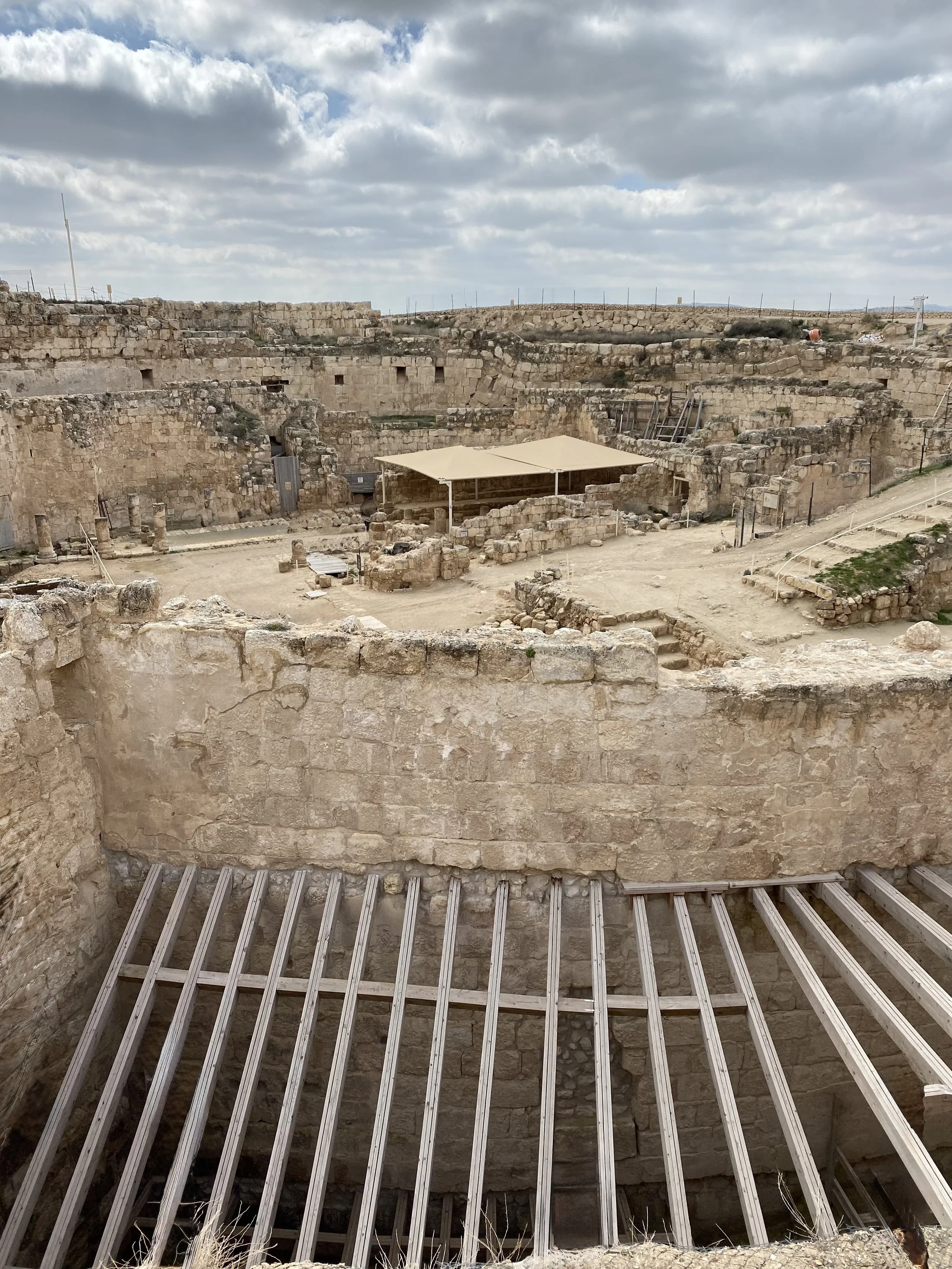 The Herodium is a palace fortress built by Herod south of Jerusalem between 22 - 15 BC. The palace had living quarter, banquet rooms, baths, great cisterns and pools. It was an impressive place to entertain and the living quarters high above easily defensible. This was also his burial place. The writings of Josephus on that matter led archeologists right to it (of course some disagree - the sarcophagus was found but the area thought too small and understated to be Herod’s tomb). The hill top palace, its cisterns and tunnels were used by Jews during the first war against Rome. Herod’s great dining room (triclinium) was turned into a synagogue. During the Bar Kokhba revolt in 130 AD the cisterns were expanded with tunnels and caves and used as a hiding place and headquarters. Since we visited the Herodium in 2020, much more is now open to the public and we hope to return someday.